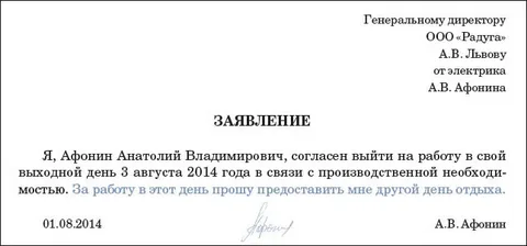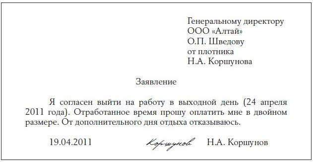 Выход на работу в выходные дни