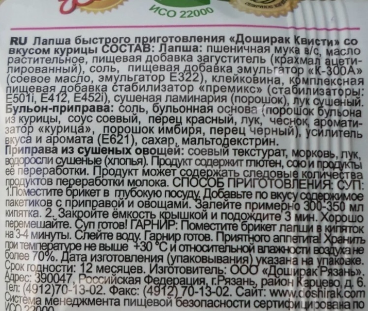 Важно, они сделали вывод, что ни один бренд лапши быстрого приготовления не соответствует российскому качеству.