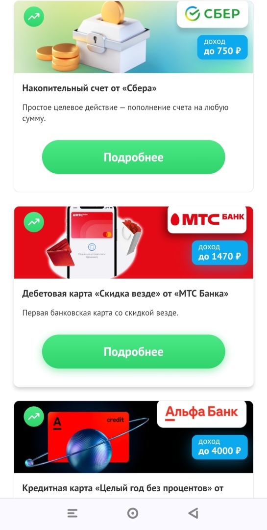 Далее листаем вниз и находим накопительный счёт Сбербанк
