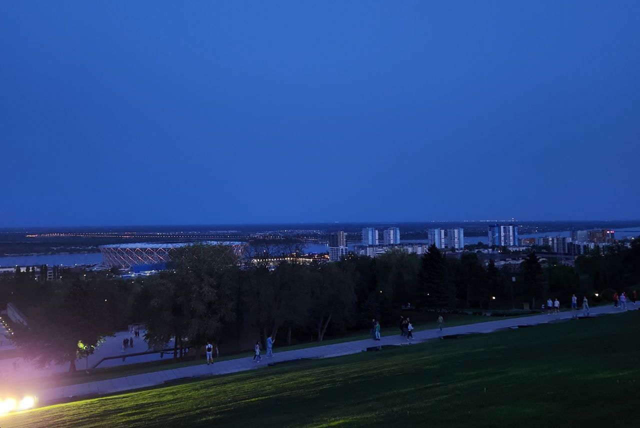 И уделили много внимания Родине-Мать, которая светилась от подсветок.