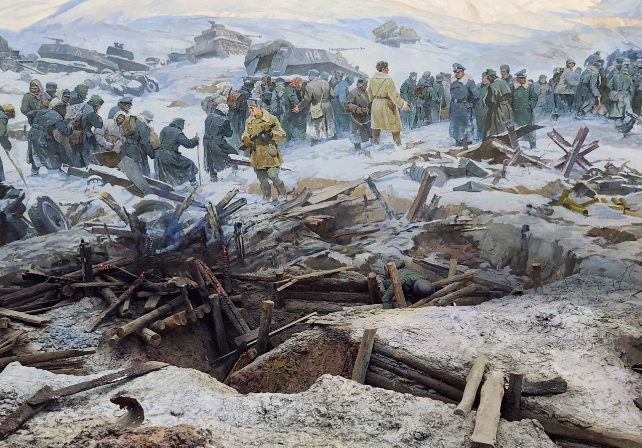 В папке у Екатерины были фотографии, схемы движения войск, обороны. Фотографии из архива, как выглядел Мамаев Курган во время Великой Отечественной войны. Свой рассказ она сопровождала показами той или иной фотографии. Мы её слушали с большим вниманием. Останавливались на каждой площадке.