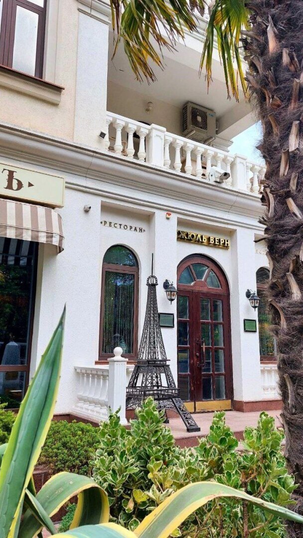 🪧 У входа в самый известный ресторан Алушты установлена «нулевая верста», где измерено расстояние до Москвы, Парижа и крымских городов.