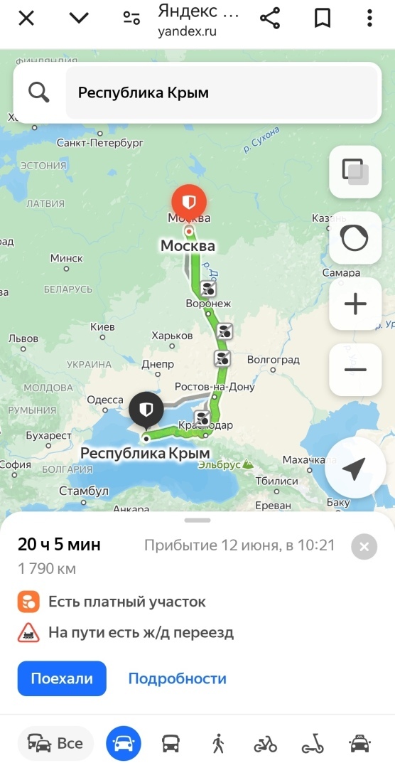 В 2021 году в июле в Москве было достаточно жарко, что находиться в квартире было без кондиционера практически не возможно. И вот в один из семейных вечеров от старшего сына прозвучала идея : "А почему мы не поедем в Крым?" - спросил он. И мы задумались, а почему бы и нет?). Решение было принято моментально, но вид транспорта конечно же совсем не был выбран. Посмотрев авиа и жд билеты, мы решили ехать на собственном автомобиле, так как это показалось самым лучшим вариантом. Погрузив нужные вещи, взяв в дорогу немного еды и напитков и проложив наш маршрут путешествия в навигаторе, мы отправились в дорогу.