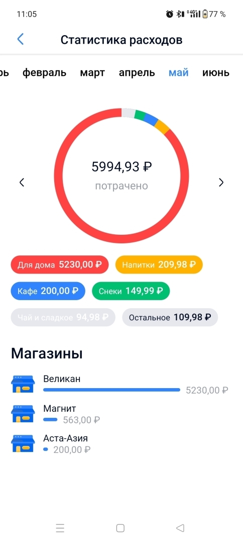 Свои расходы я отслеживаю через приложение Чек - Скан. Удобно и видно куда я потратил свою зарплату. Чеки сканирую постоянно.