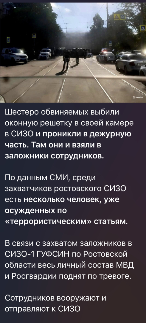 ЧП в Ростове-на-Дону. В СИЗО-1 террористы ИГИЛ** взяли в заложники сотрудников изолятора