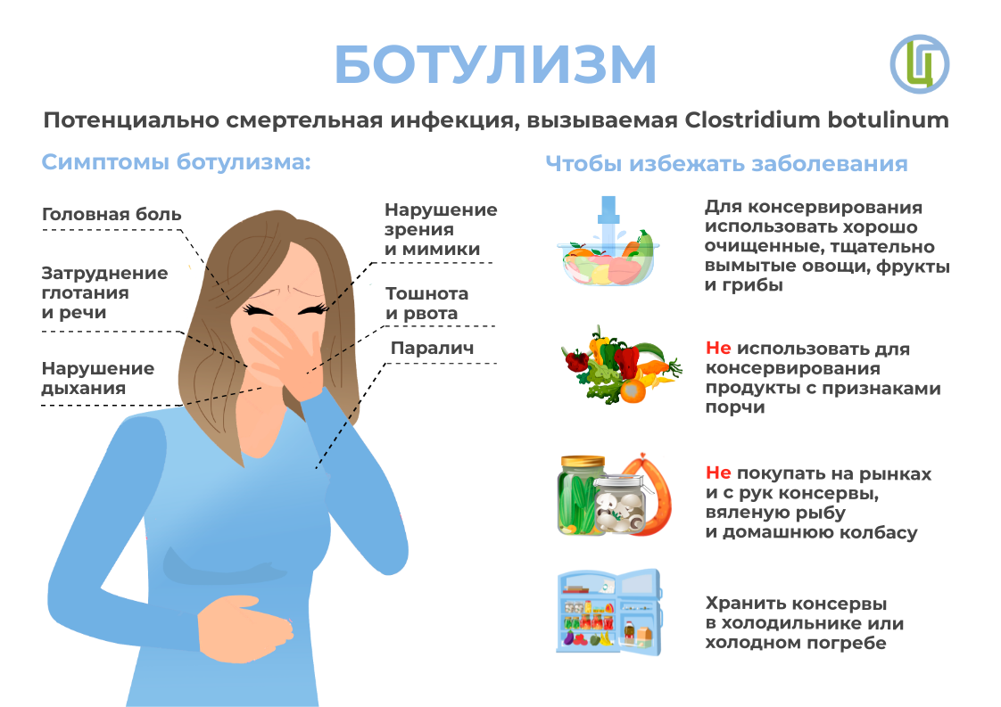 Ботулизм — это острое инфекционное заболевание, вызванное токсинами бактерий Clostridium botulinum. Эти токсины поражают нервную систему и могут привести к параличу мышц, включая дыхательные. Заболевание может быть смертельным, если не принять своевременные меры.