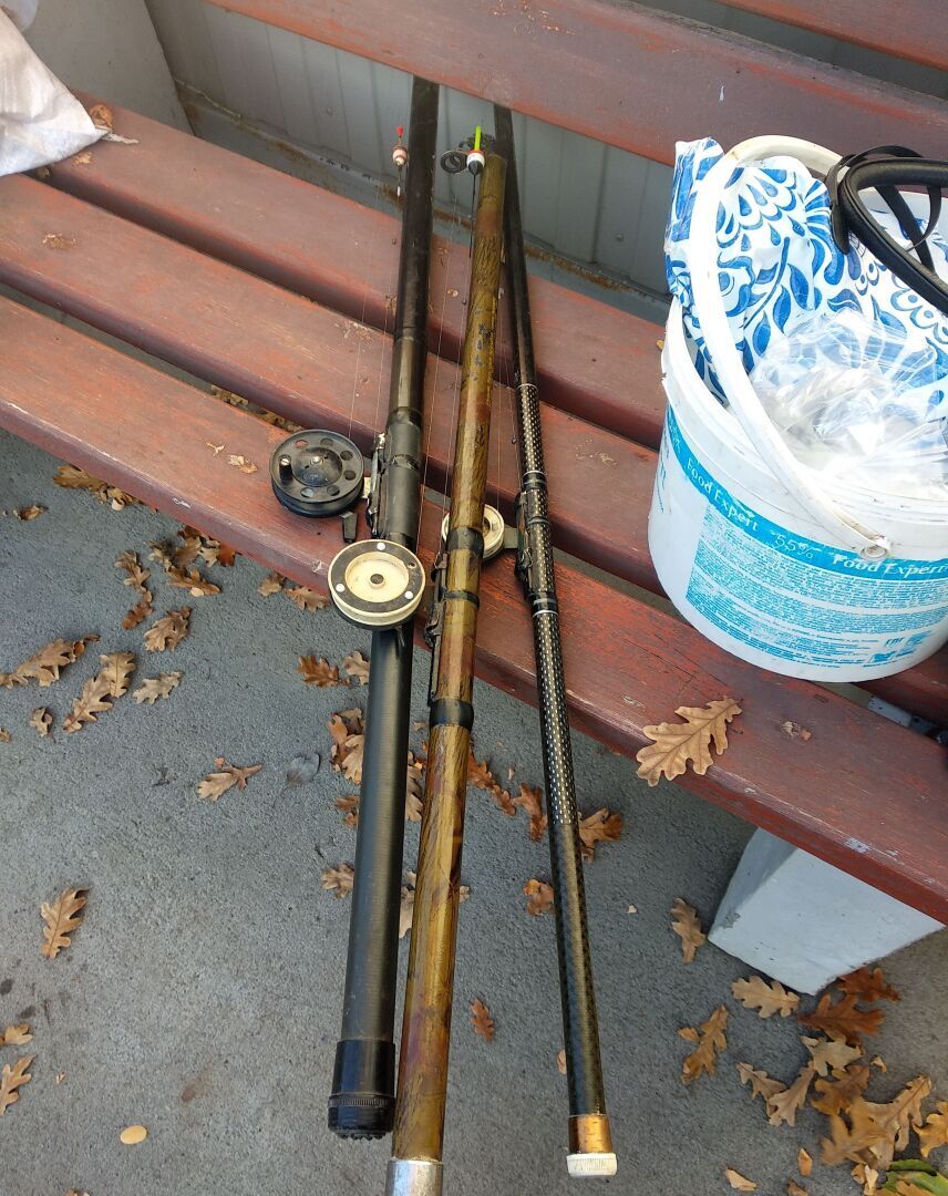 Да, да, не смейтесь. Три настроенных удочки и коробочка с поплавками, леской, крючками. Подсак и небольшое ведерко. Удочки пригождались и для корпоративной рыбалки. Я об этом статью писала. Меня даже местное ТВ снимало и интервью брало. Статья называется: «Душевная радость – рыбалка. Имеется ли место для женской рыбалки?». В конце статьи размещу ссылку на прочтение. Это было интересно.