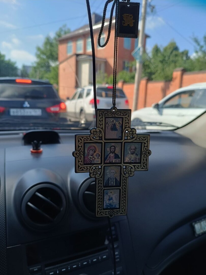 Есть маленький набор отверток, где в ручку вставляются наконечники. Пару раз пользовалась. Всякие тряпочки, чтобы стекло протирать. Полироль для панели, аптечка (правда просроченная), пятилитровая бутылка с водой, пятилитровая бутылка с незамерзайкой, фольга стекла от солнца закрывать, иконы – это оберег, жилет со светоотражающими нашивками.