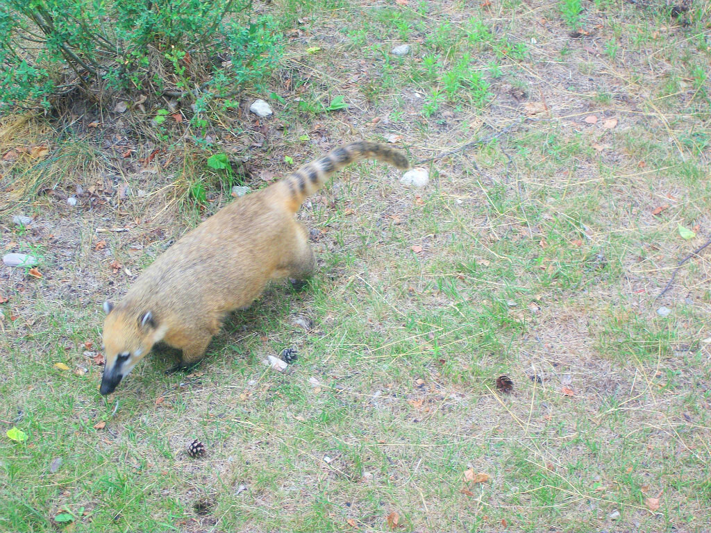 Встретили ещё одного интересного зверька. Это носуха, семейство Енотовые. Шустрая такая, с красивым полосатым хвостиком и длинным носом. Отсюда и такое название у животного.