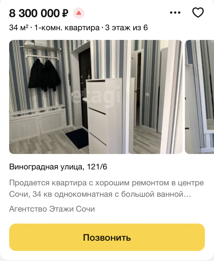 Одно из объявлений о продаже недвижимости в этом доме, и таких несколько