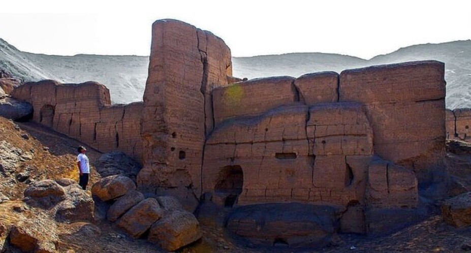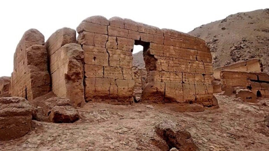 Непонятно по фото, из чего возведено, то ли из больших глиняных кирпичей, то ли из каменных блоков. Но, по описаниям, фундамент каменный, т. е. относится к более древним временам.