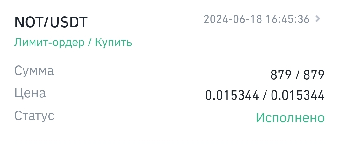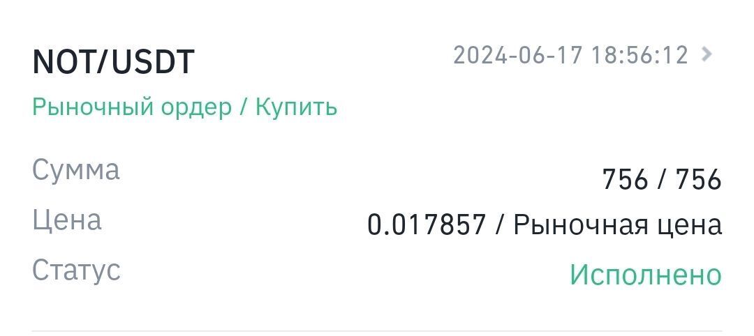 Разбил оставшуюся сумму на две части и одной из них зашёл в монету NOT (связанная с Дуровым и телеграм). Такой ход видится мне более перспективным. Однако, монета на следующий день оказалась в минусе на 11,5%🙂 Как видите у меня талант 😁 Поэтому, данная информация не является индивидуальной инвестиционной рекомендацией! 😊
