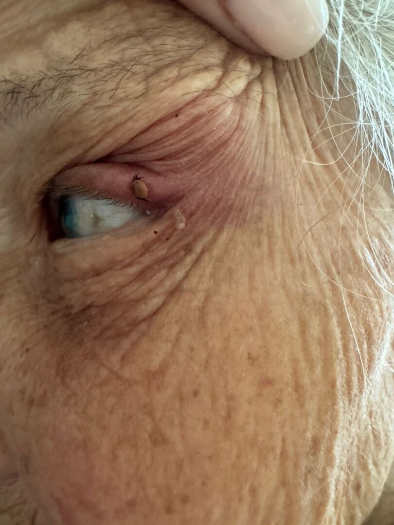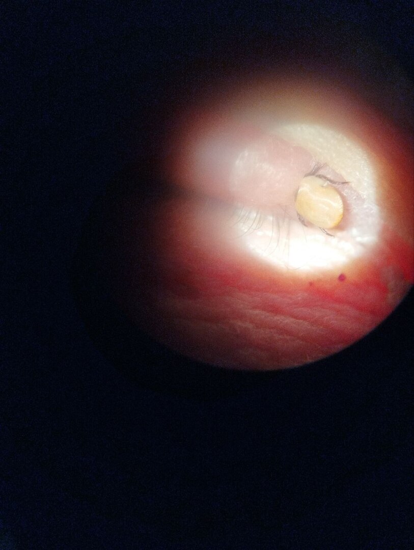 Клещ на верхнем веке. Еще раз об опасности укусов клеща, как переносчика клещевого энцефалита и боррелиоза и др. инфекций.