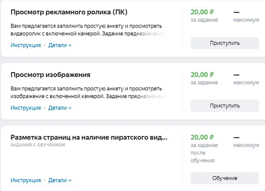 Некоторые задания предлагают сделать с включённой камерой. Такие задания и оплачиваются неплохо. Но все согласны их взять. Мало ли потом, куда попадёт видео с твоим лицом. Я тоже такие не беру.