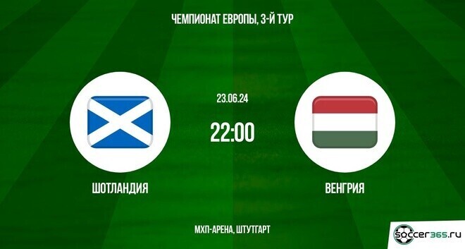Также, сегодня пройдёт матч между Шотландией и Венгрией, который состоится на MHPArena в Штутгарте.
