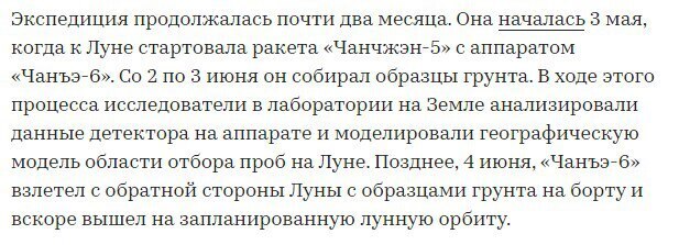 Китайский зонд "Чанъэ-6" осуществил исторический забор лунного грунта с обратной стороны Луны и доставил его на Землю