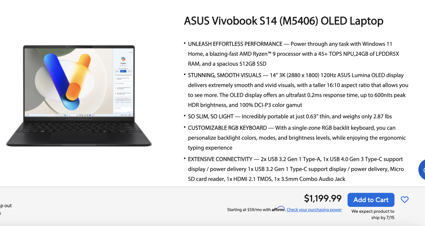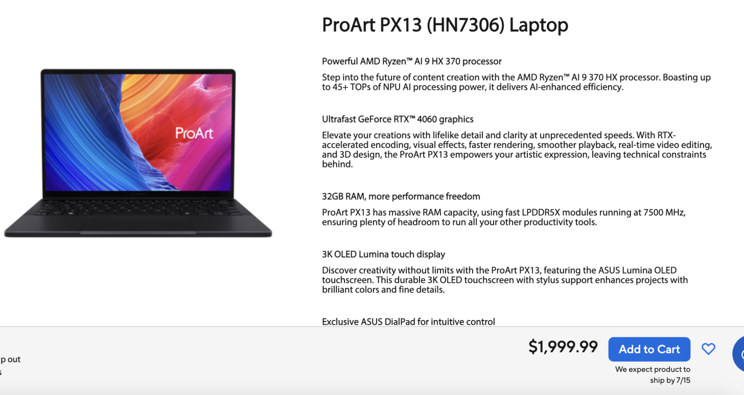 Согласно данным ASUS, компания планирует выпустить несколько моделей ноутбуков с гибридными процессорами AMD Strix Point «Ryzen AI 300» к 15 июля. Videocardz упоминает эту конкретную дату запуска в нескольких магазинах, включая веб-сайты в США и Европе.