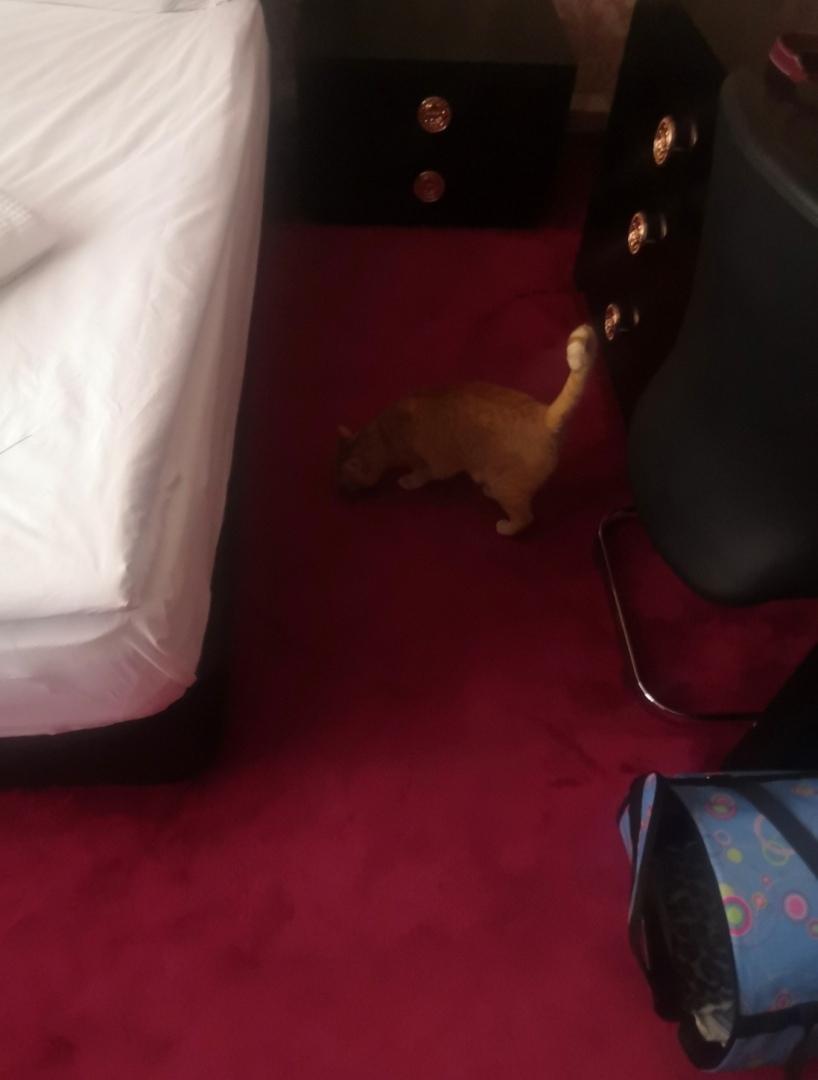 И в гостинице кошка постоянно где-то пряталась. Когда мы заходим домой, она нас встречает, в гостиничном же номере она откуда-то вылазила постоянно, только когда удостоверялась, что это мы.