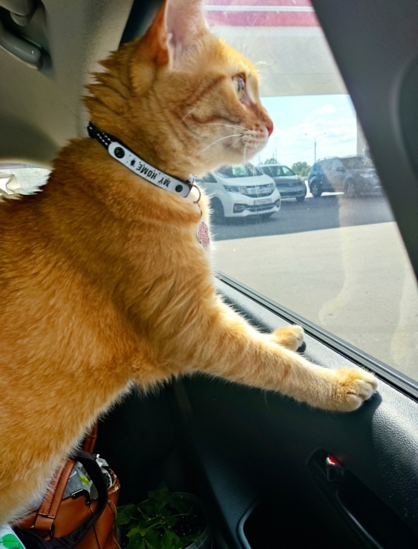В дорогу кошке обязательно надеваю ошейник с адресником, где указана кличка кошки и мой мобильный телефон. Моя кошка очень домашняя и сильно боится шума машин. Кстати, с самого детства. Поэтому есть вероятность, что это котенок от домашней кошки. Потому и такой воспитанный. Как только на кошке закрывается ошейник (а он у меня с быстрой защелкой), она уже понимает неотвратимость происходящего, вся сжимается и начинает пищать.