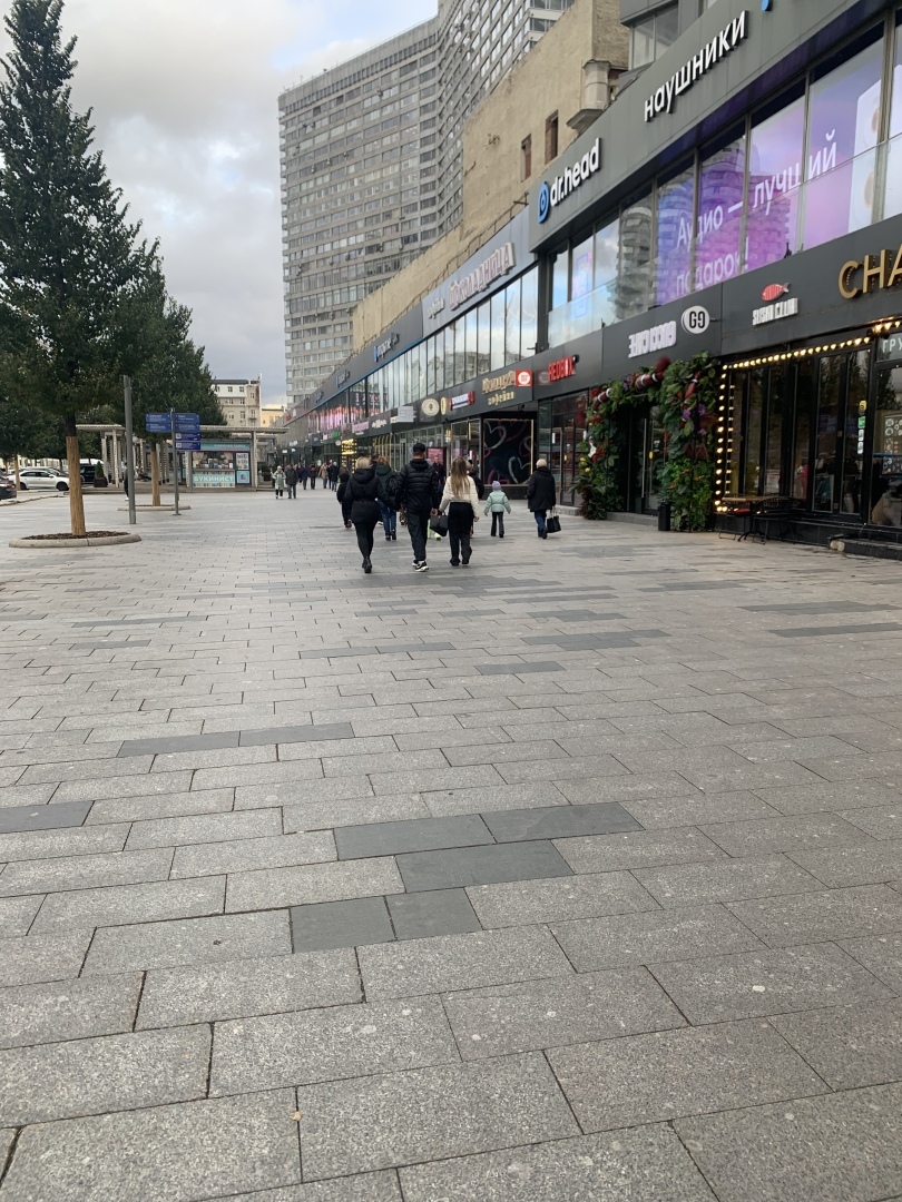 Территория парка огромная. Сначала идет зона с магазинами- «городской променад»