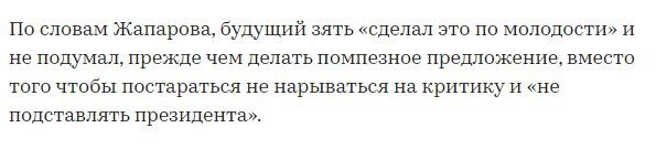 Под прикрытием дяди! Это они виноваты, молодежь! Прекрасно понимая, что пойдут кривотолки. Но хвастовство превыше всего. Президент Жапаров извинился за молодую племянницу. Непонятно, стоило ли это делать?! За каждые поступки родственников извиняться? Не солидно!