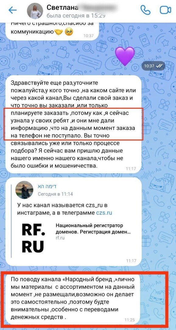 Я написала ей лично, спросила, сотрудничает ли она с телеграм-каналом «Народный бренд»? И вуаля. Ответ: нет!
