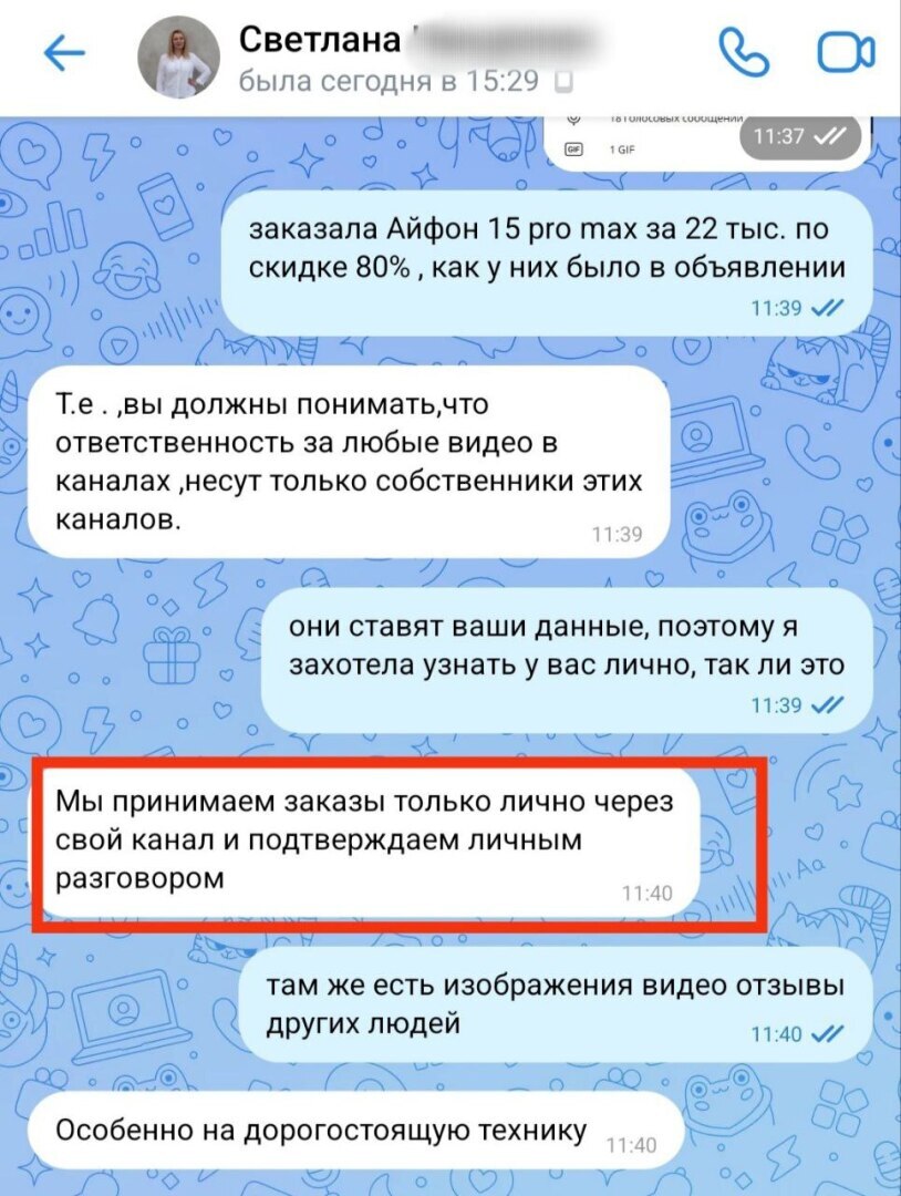 "Цена на Айфон 15 pro max всего 22 тысячи рублей, скидка 80%" явно говорит о том, что это мошенники.