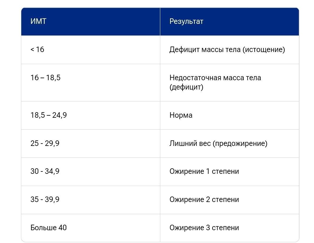 Если смотреть выше указанную таблицу, то когда до занятиями фитнесом и бодибилдингом до 39 лет мой вес был 69 кг и при моём росте 1,9 м индекс массы тела равнялся 19,11 (можете перепроверить) - это "НОРМА" !
