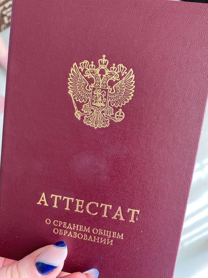 Красный аттестат и золотая медаль в её руках сияли ярче любых бриллиантов! (Кстати, ЕГЭ она сдала отлично. Все предметы на 80+ баллов!