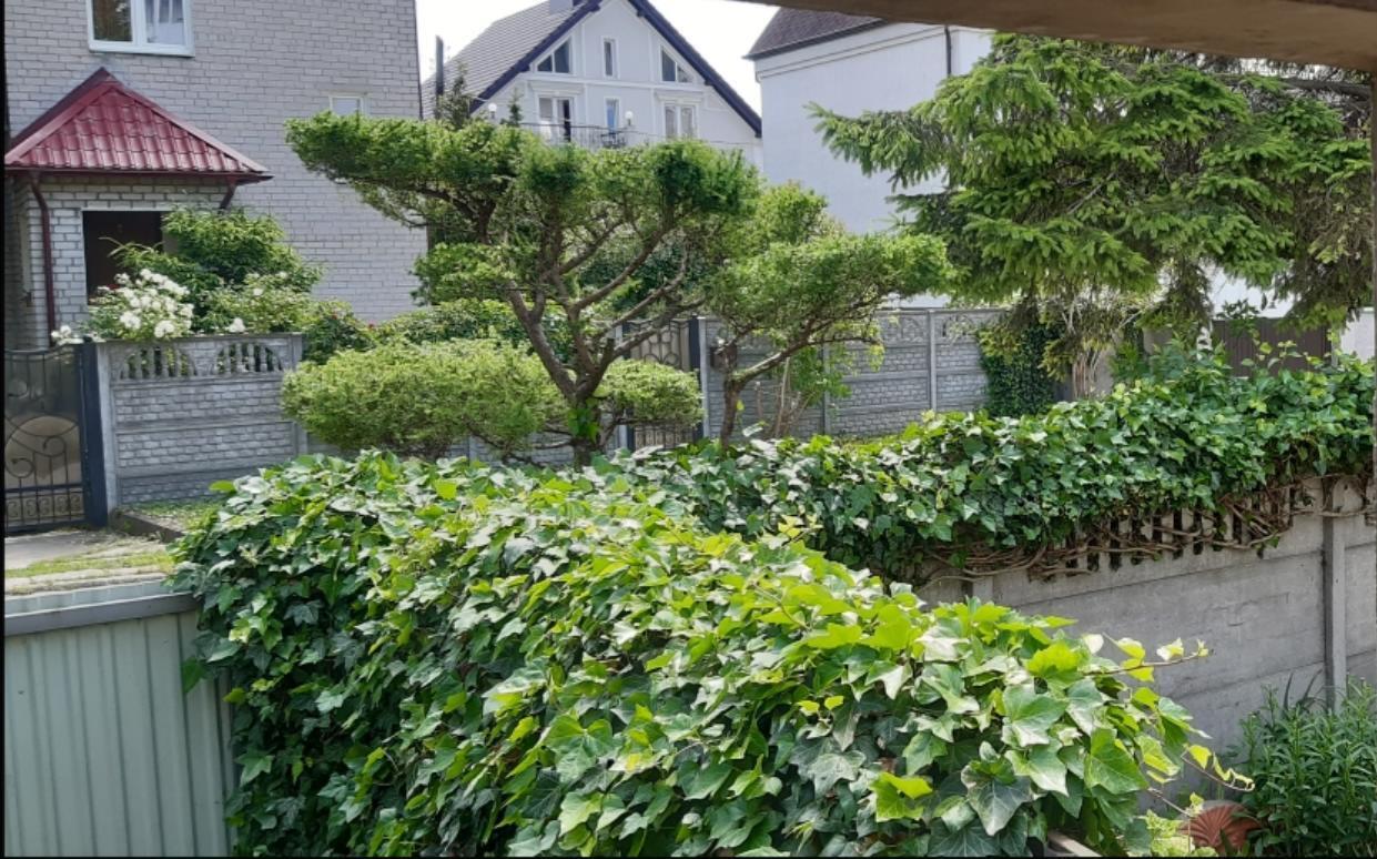 Я старался, на переднем плане, по всему забору вечнозелёный плющ, чуть дальше лиственница посадил почти 30 лет тому думал какой-то можжевельник. Осенью осыпалась стал "уродовать" а-ля бонсай и стричь в джапэнском стиле, людям нравится, фотографируются на фоне