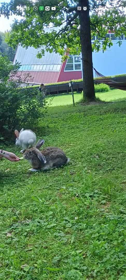 Кролики с большим удовольствием и покушают с ваших рук, и дадут себя погладить!
