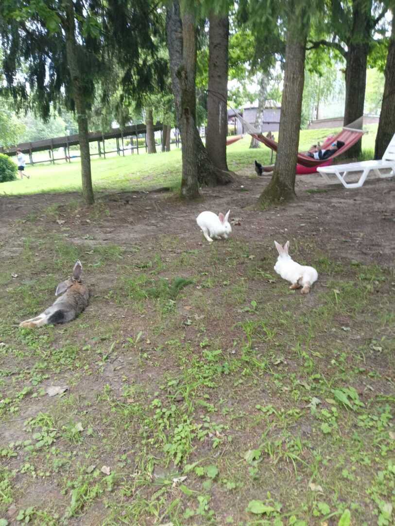 Повсюду бегают кролики. Они тут настолько ручные, что не боятся никого и ничего, с большим удовольствием подходят к отдыхающим. Дети, приезжающие на отдых вместе с родителями и без (на спортивные сборы от секций), просто в восторге от происходящего!