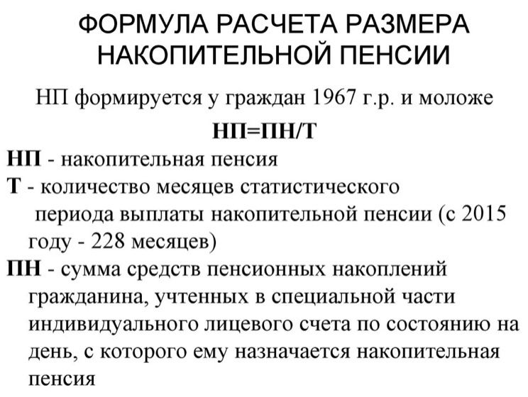 "В зависимости от его соотношения с суммой накопленных средств человек получит деньги одним из двух способов: ежемесячной пенсией, либо разовой выплатой." Разовая сумма: если сумма не превышает 120 тыс.руб., если сумма больше, то её разложат по месяцам. Мне будут выплачивать 260 месяцев.... Хвала Создателю рода человеческого! Данный расчёт да Господу в уши)))) 🤗 😉 😊