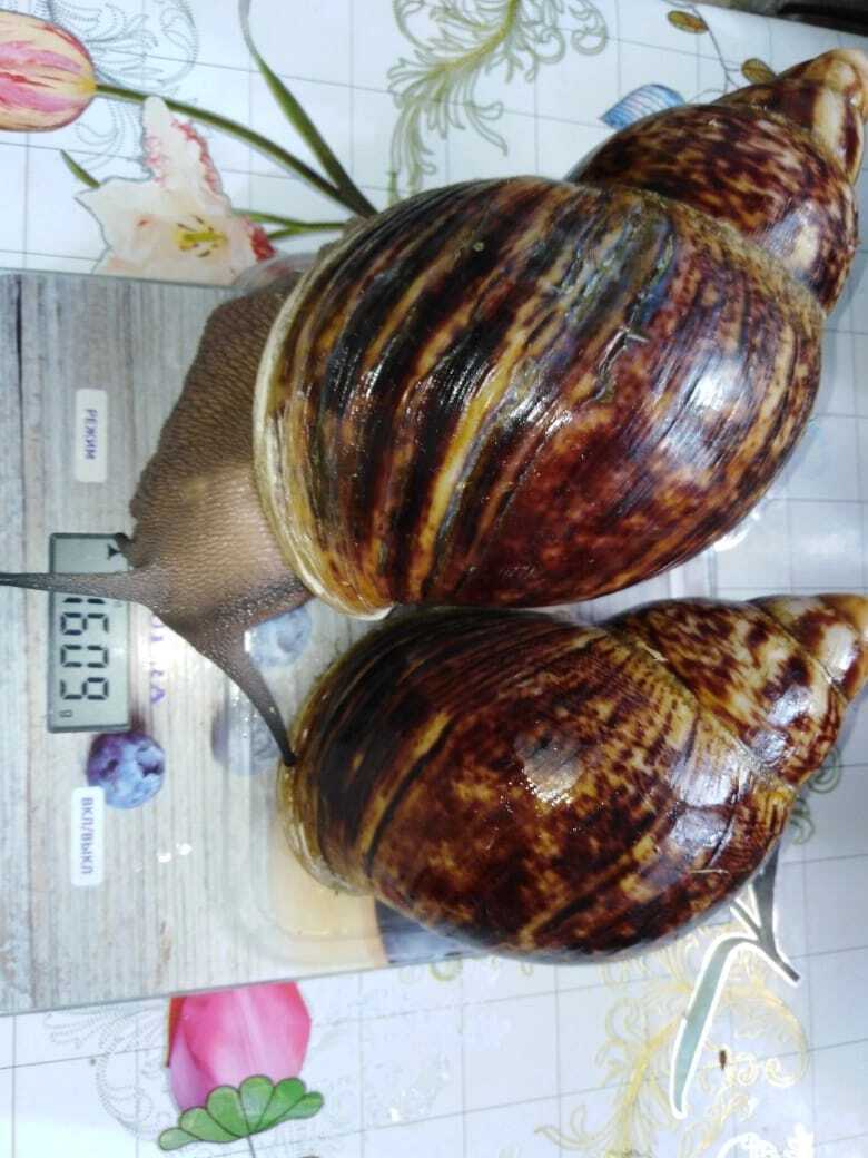 В среднем вес африканской улитки может достигать до 800-900 грамм! На фото моя парочка улиток овумов. Они прожили около 7 лет и весили примерно 1609 граммов. Может быть, у кого-то остались такие же улитки. Их можно встретить на выставках типа Рептилиум, которая бывает два раза в год: весной или летом и осенью. Следующая будет примерно в сентябре-октябре.