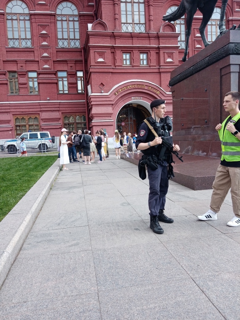 В округе много полиции. И на моё удивление, смотрю, наш народ и гости столицы, не заморачивается и прямо на Красную площадь заказывают для себя доставку продуктов.