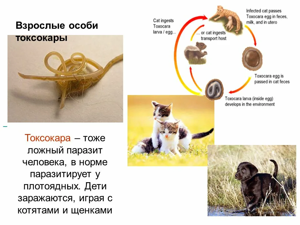 Особую опасность представляют домашние питомцы - собаки и кошки. Их фекалии, содержащие яйца токсокар, могут загрязнять окружающую среду, в том числе детские площадки, песочницы, овощные грядки. При попадании яиц паразита в организм человека, личинки мигрируют по различным тканям и органам, вызывая серьезные осложнения.
