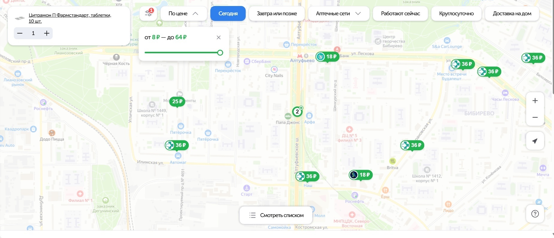 Здесь как и во всех аптеках России. Например, Цитрамон П Фармстандарт, таблетки, 10 шт. с оптовой ценой 0,7 - 1 руб. и доставкой до двери аптеки: в аптеках розничная цена от 8 до 64 рублей!
