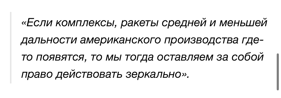 7. При этом президент подчеркивает, что Россия ответит зеркально, если где-либо будут поставлены комплексы США.
