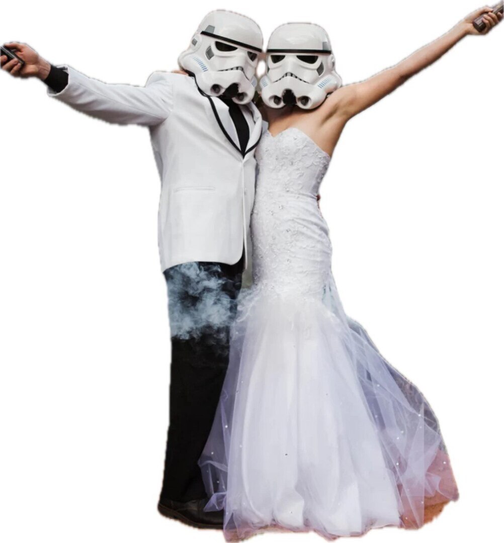 Но сегодняшний день стал особенным. Молодожены, мечтающие о свадьбе, как у Энакина Скайуокера и Падме Амидалы, получили шанс воплотить свою фантазию в реальность. Невесты, под руку с Дартом Вейдером и под звуки «Имперского марша», шли к алтарю, а женихов сопровождали верные дроиды R2-D2 и C-3PO. Вся церемония была наполнена волшебством и атмосферой далекой-далекой галактики.