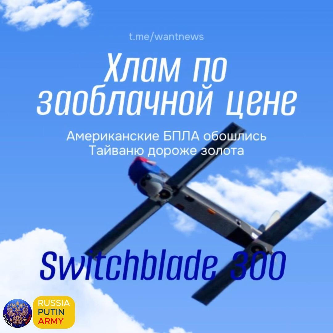🔣Первый — Switchblade 300, который на Украине назвали электронным мусором. Американцы в свое время поставили Киеву 7️⃣0️⃣0️⃣ таких дронов, но результатов не было. Тайваню они обошлись в 6️⃣ раз дороже реальной стоимости.