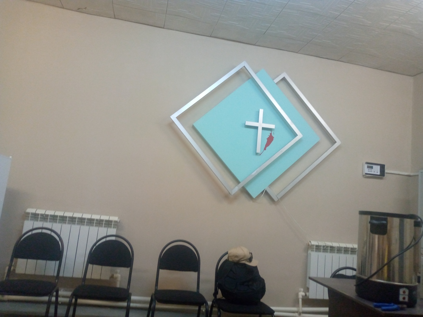 Зал был обустроен в виде амфитеатра, я подсчитала количество мест их оказалось около 100. Здесь нет свечей и свободный стиль одежды, не нужно надевать платки, а пастырь не носит рясу.