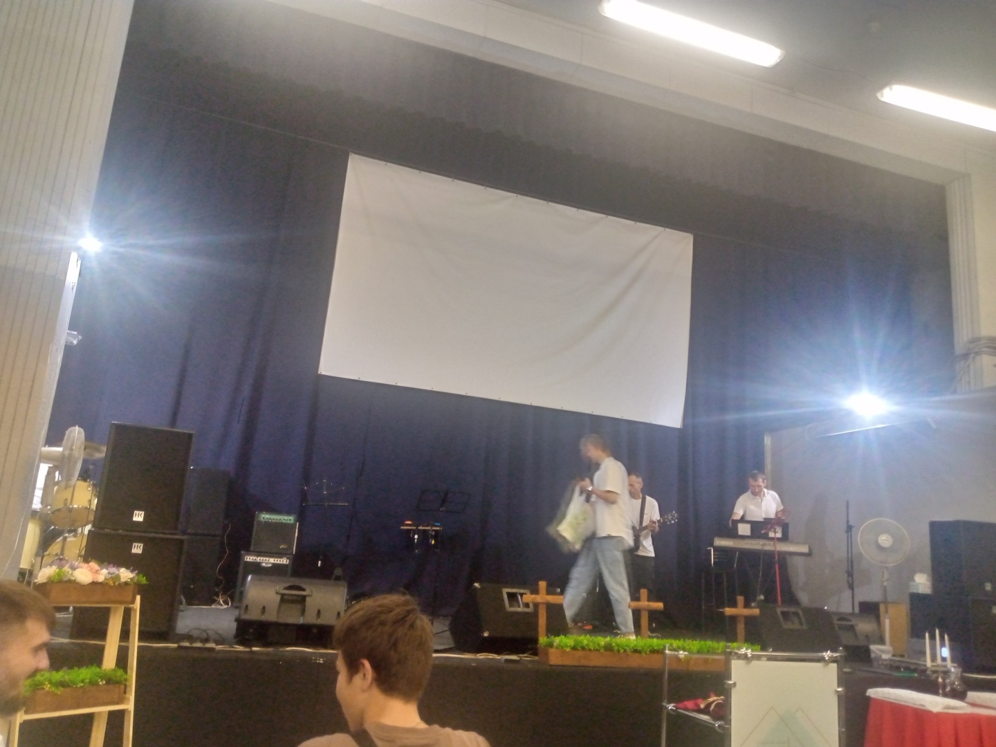 Мы практически сразу отправились в зал, где ребята, которые являются прославляющей группой принялись к репетиции.