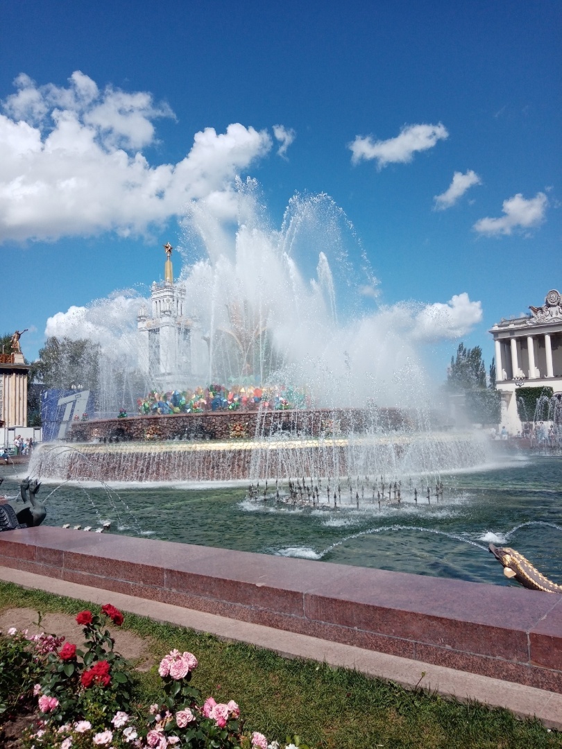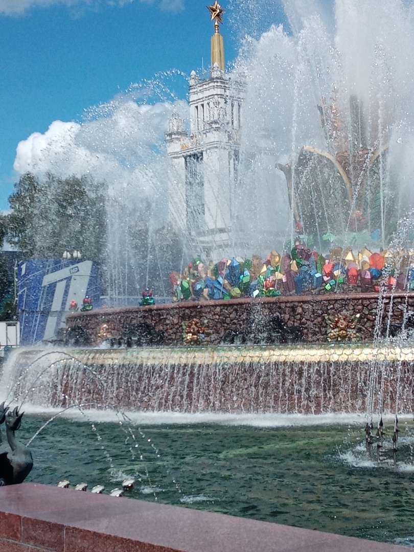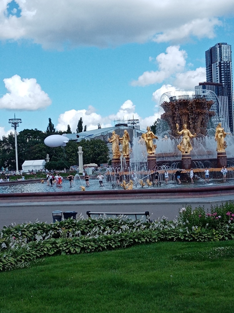 В предпоследний день, 6 июля, выставки "Россия" нам удалось побывать в двух музеях: 59-м павильоне, где мы пообщались с искусственным интеллектом и увидели города будущего с помощью машины времени; и 75-м павильоне, где посмотрели всех роботов России. Вау, это было круто! Но самое главное нам удалось насладиться красотой, шумом и свежестью двух самых главных фонтанов выставки: "Каменный цветок" и "Дружба народов".