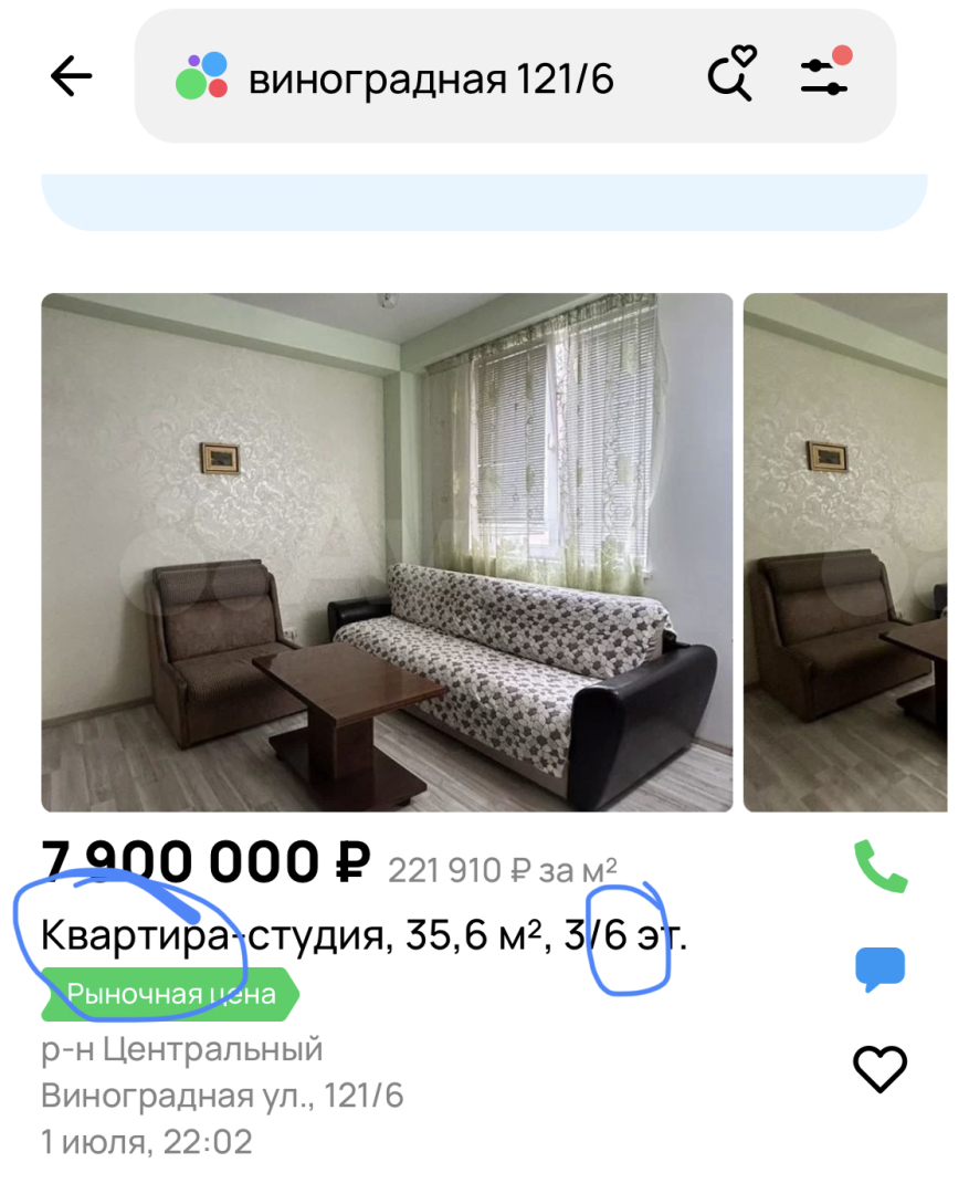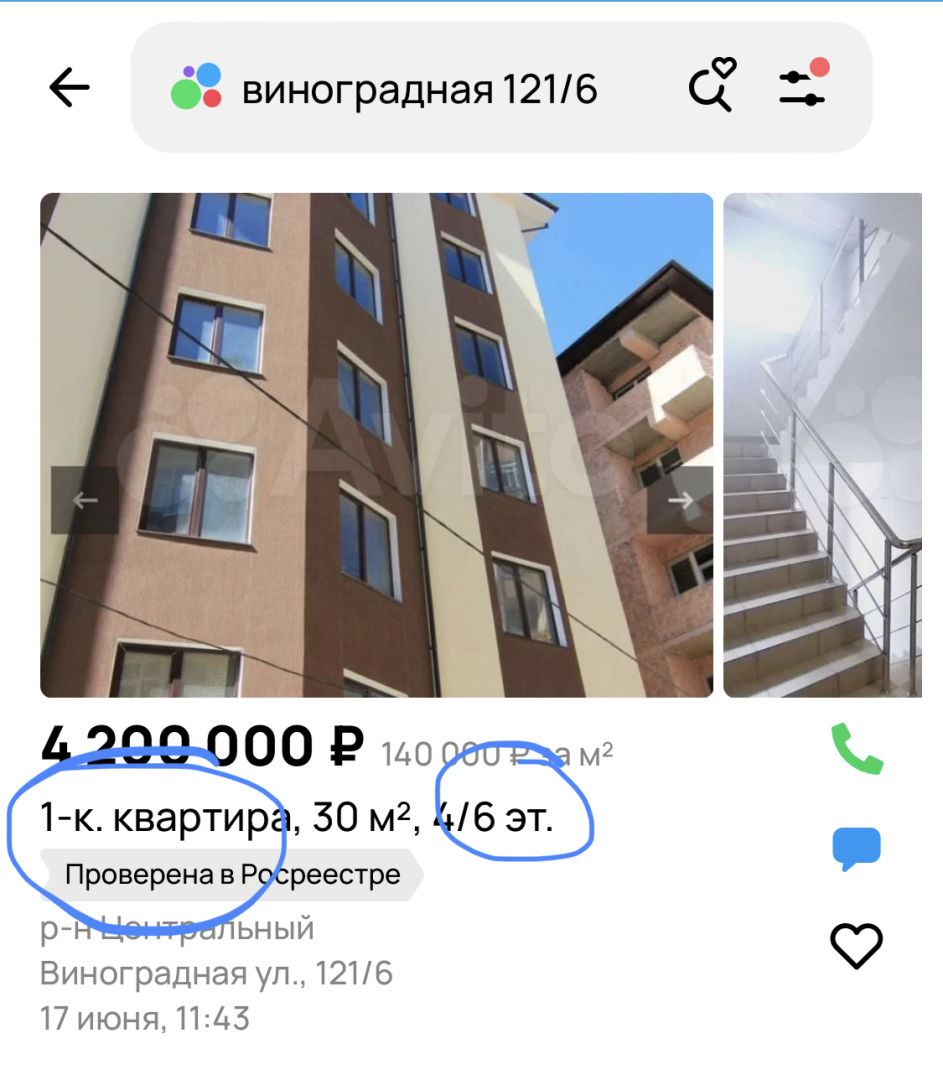 Итак, В объявлении о продажах на авито объектов в доме ✅Виноградная 121/6✅