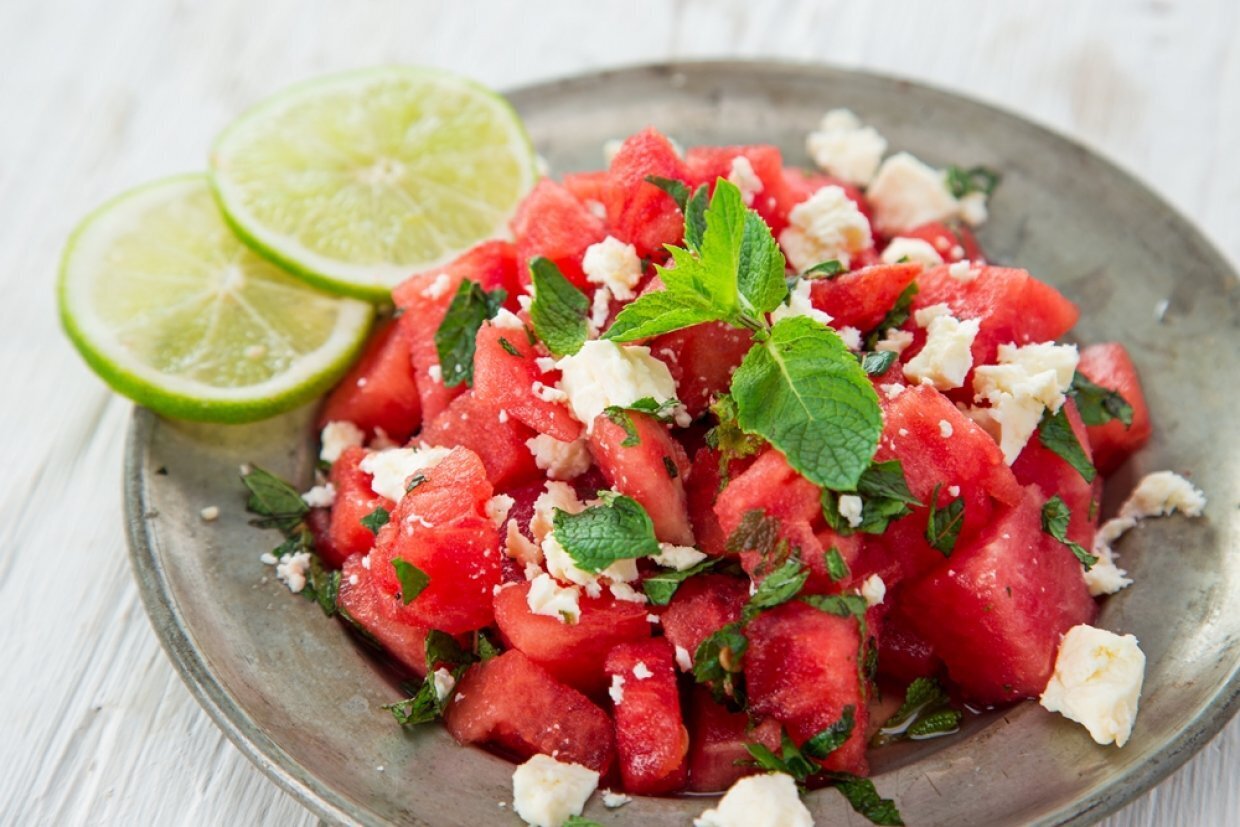 Какой необычный рецепт. Сладкий арбуз и солоноватая фета. Плюс мята. Заинтриговали. Хочу попробовать)