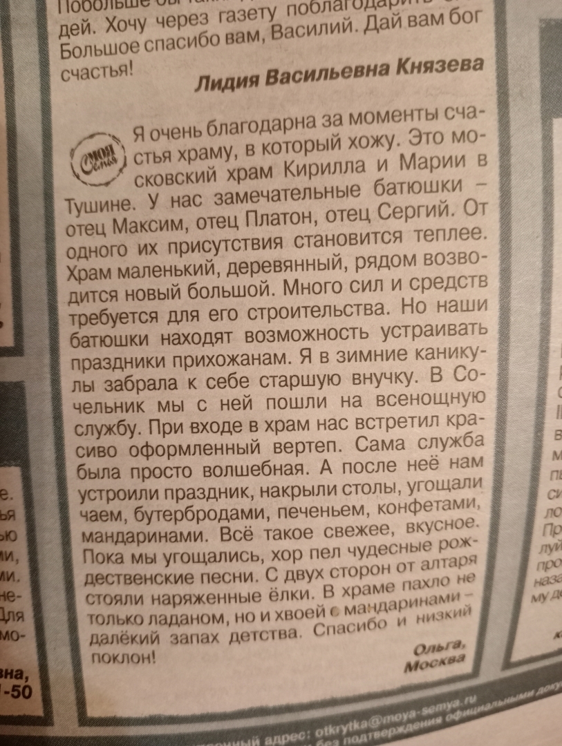 Я Вас понимаю, я сама туда хожу крайне редко. На это тоже есть причины. Не особо доверяю священнослужителям. Спасибо за комментарий!