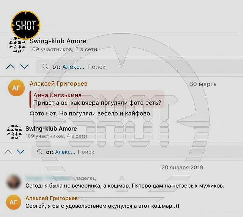 Пронырливый и ехидный Telegram-канал SHOT накопал инфу на Главу Осинского городского округа Алексея Григорьева. Журналюги залезли в чат местного свингер-клуба «Аморе» и выяснили, что там активно тусуется и получает свою долю телесных радостей господин Григорьев.