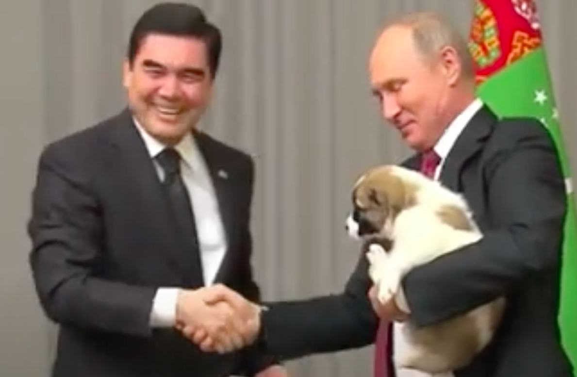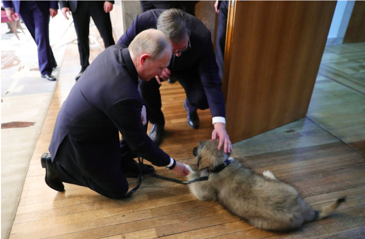 В январе 2019 года Путин получил в подарок 4-месячного щенка сарпланинаца от президента Сербии Александра Вучича, который гораздо более гуманнее, чем его туркменский коллега, позволил собаке лежать на земле, пока Путин знакомился с ней.