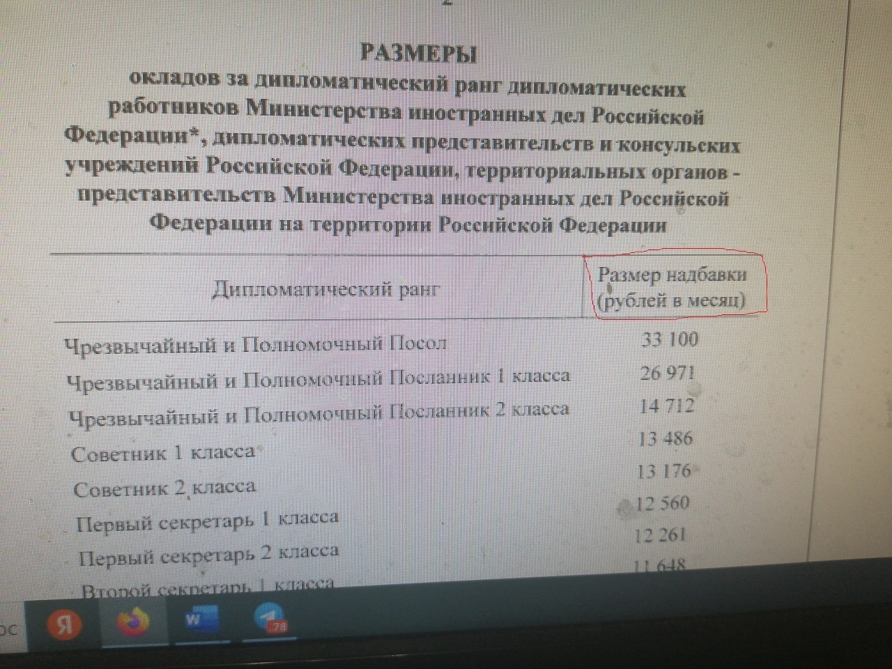 Мы живем в реальном мире, не под колпаком. З/П Посла России (за пределами России) составляет 5-6 000 долларов. Об этом давно всем известно. Ой, что-то мне подсказывает, что суммы выше, чем мы читали ранее. Для чего вводить в заблуждение нас, несчастных, больных на голову из-за вечной нехватки денег?