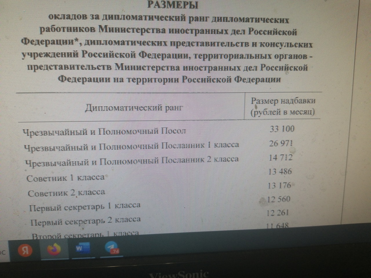 СМИ сообщили, что основная зарплата чиновников составляет …даже писать неловко…Полномочный посол…30167 рублей. Да.